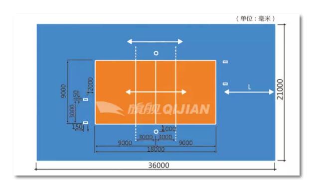 1、球場比賽區(qū)尺寸,28x15米(不含線寬),天花板或最低障礙不小于7米 ;